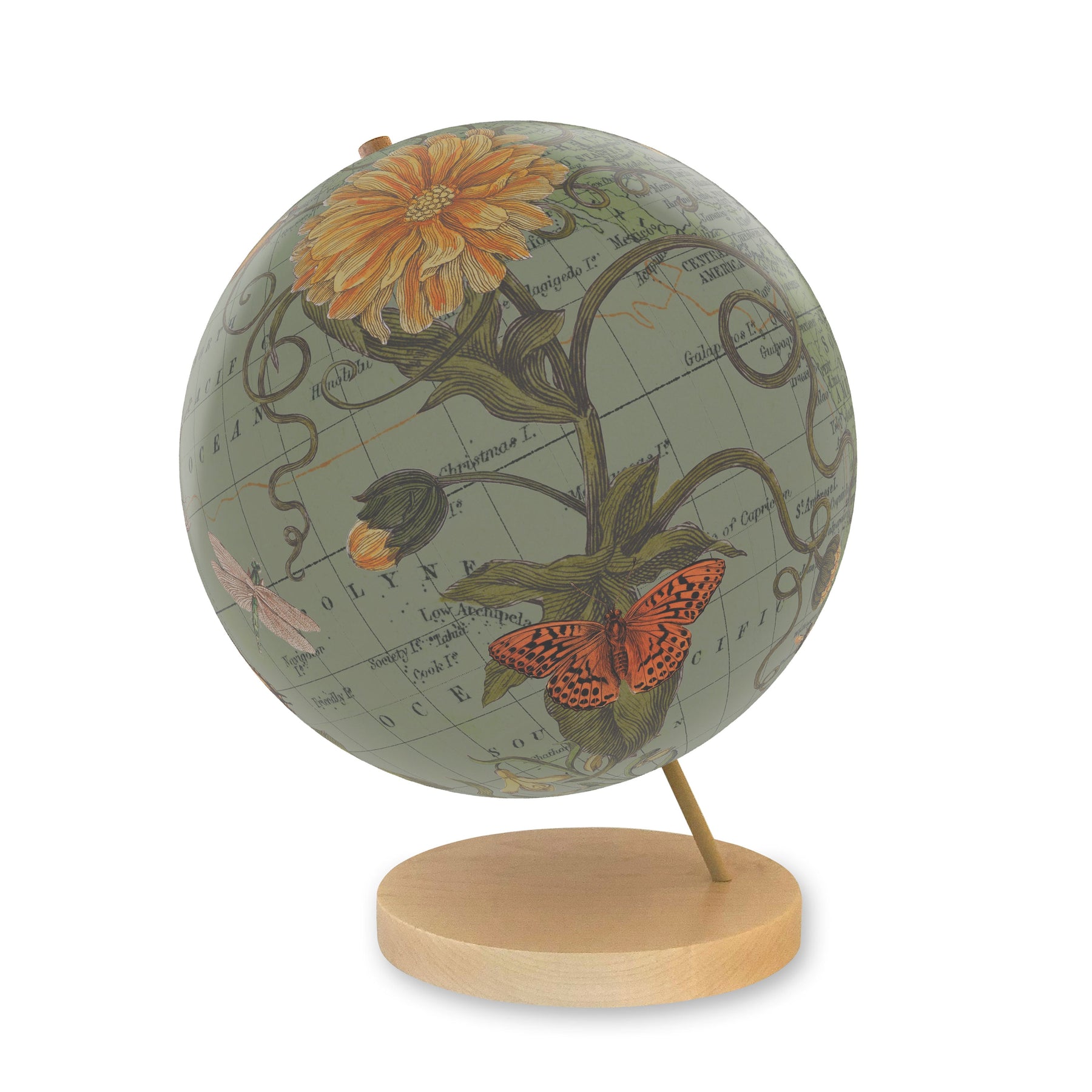 A world where nature takes center stage. The Botanical Delights Globe is a handcrafted work of art that celebrates the beauty of flora and fauna, layered over a vintage world map. Featuring an elegant collage of botanical engravings, flowers, butterflies, dragonflies, bees, and a perched bird, this globe evokes the charm of antique botanical illustrations and natural history ephemera.