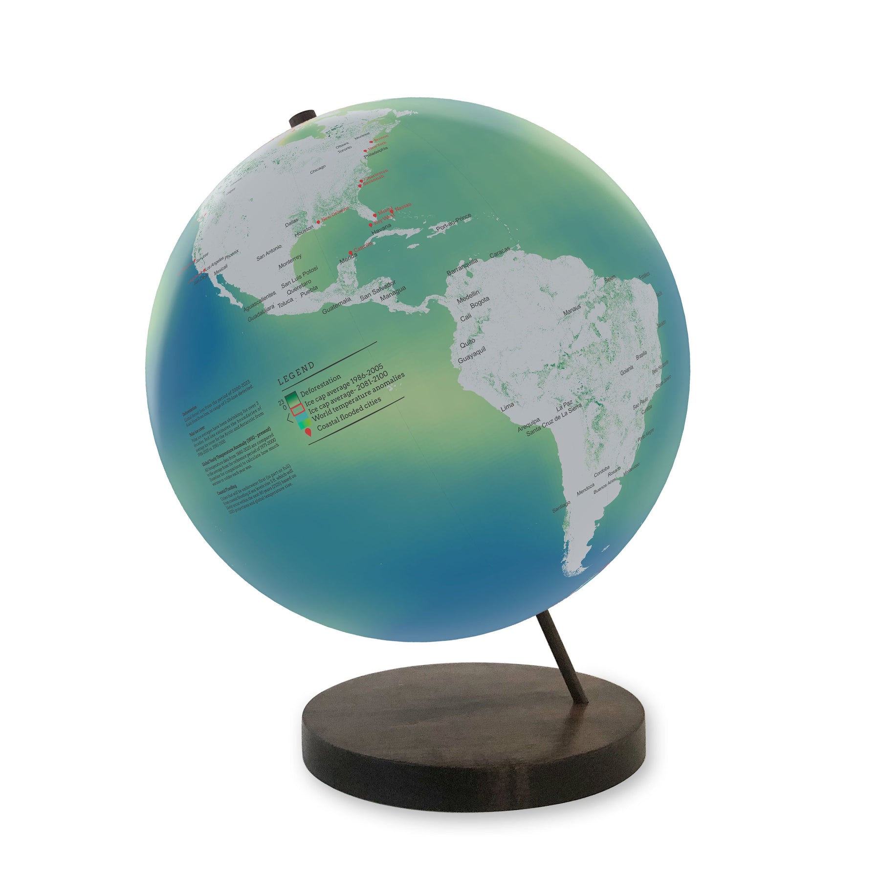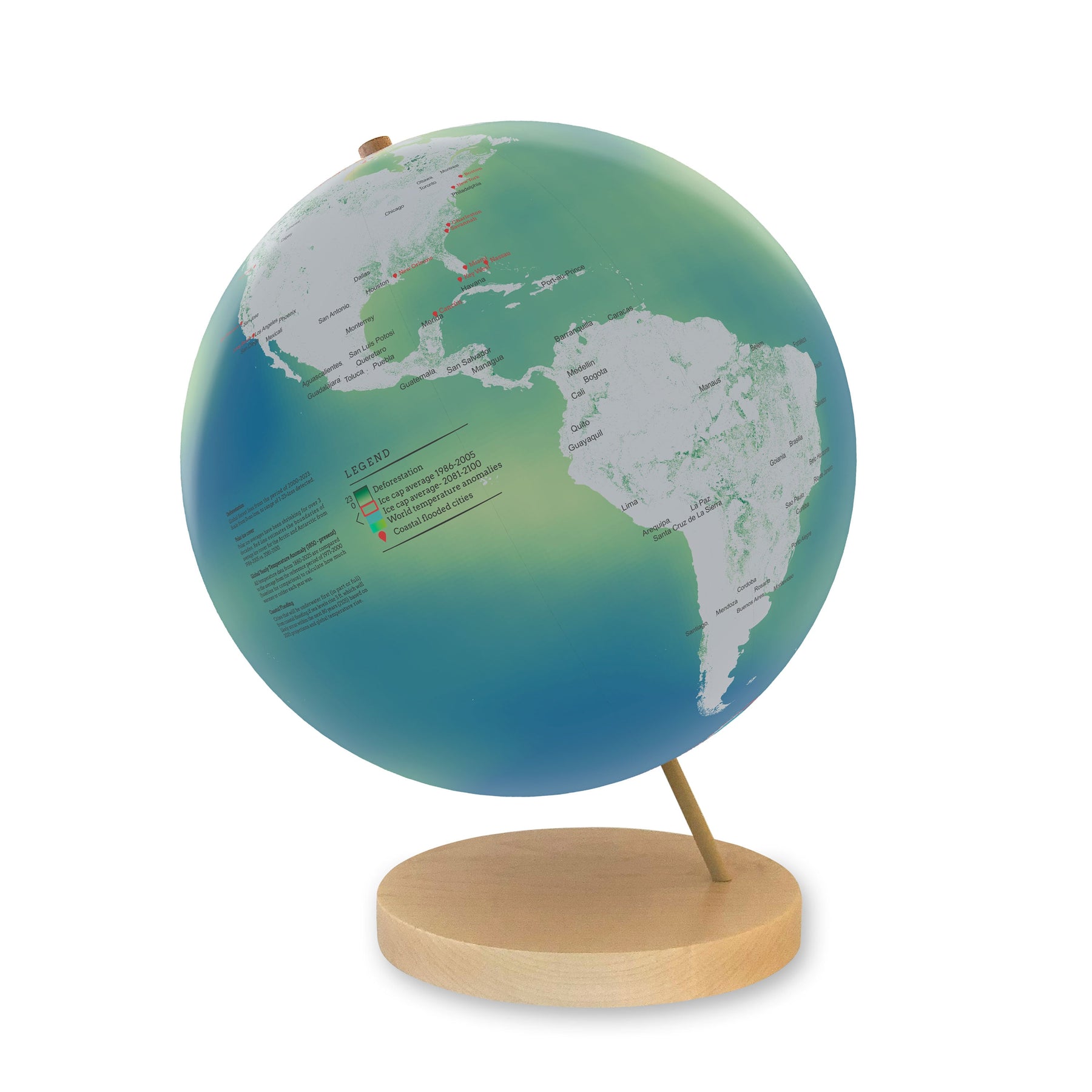 A custom map key provides context for each environmental marker, making the globe an excellent resource for classrooms, libraries, and climate-focused discussions. Sustainably made and mounted on an eco-friendly wooden base of your choice, it serves as both a visually engaging artwork and a meaningful reminder of the urgent challenges our planet faces.