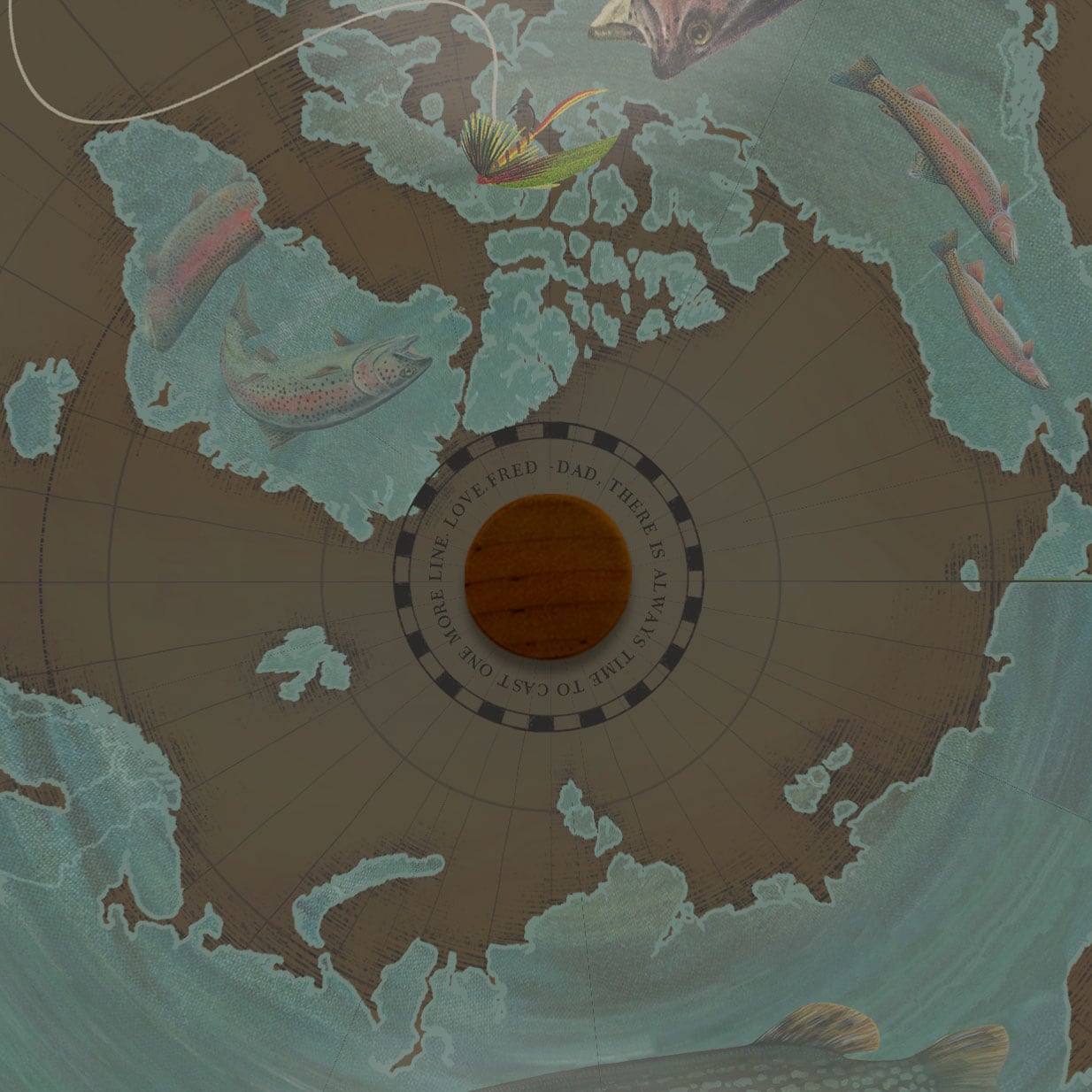 Our handmade Fly Fishing Globe celebrates the global spirit of angling with vintage illustrations of fish species collaged across the continents. Each fish is placed in the regions where it’s commonly fished, creating a rich visual tapestry that honors the connection between geography and the sport of fly fishing.