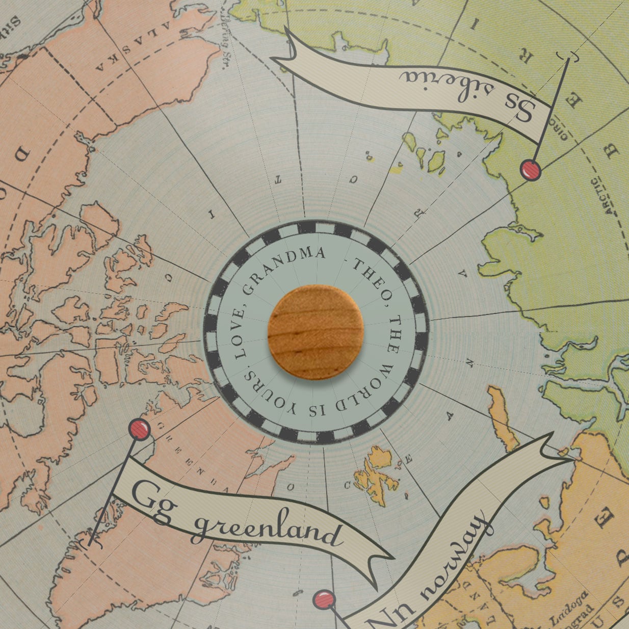 Choose from four eco-friendly stained wood bases, and add a personalized message to the top of the globe.