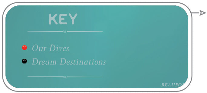 Put your scuba diving explorations and world travels on the map, with this wondrous underwater diving map with push pins.
