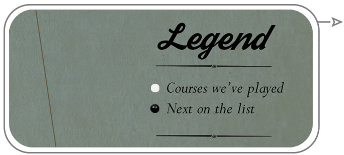 Golfers proudly track and commemorate your golf games and travels to the top 100 golf courses in the USA, with our nostalgic vintage style personalized golf push pin travel map.